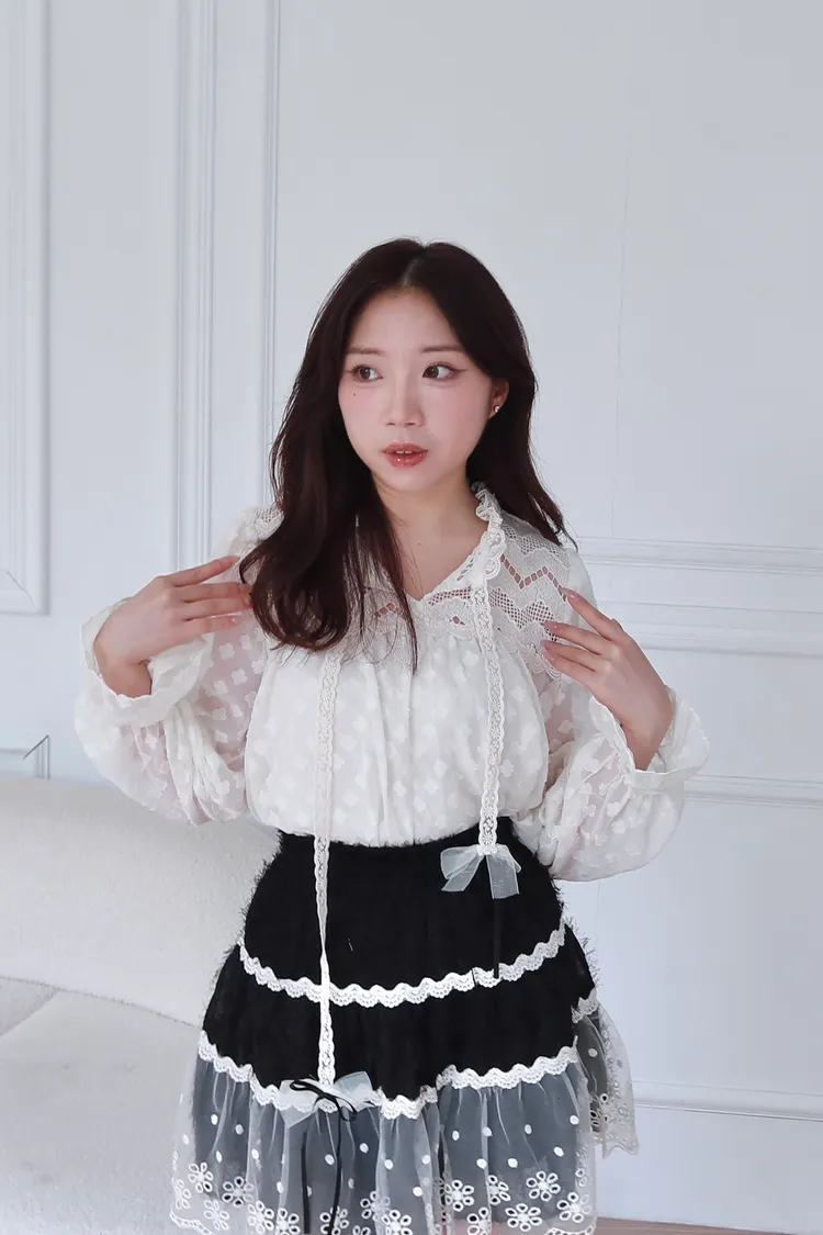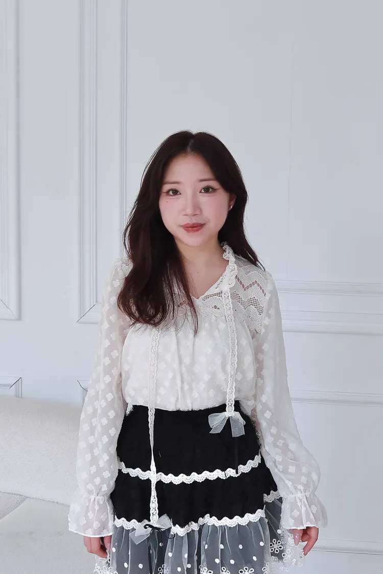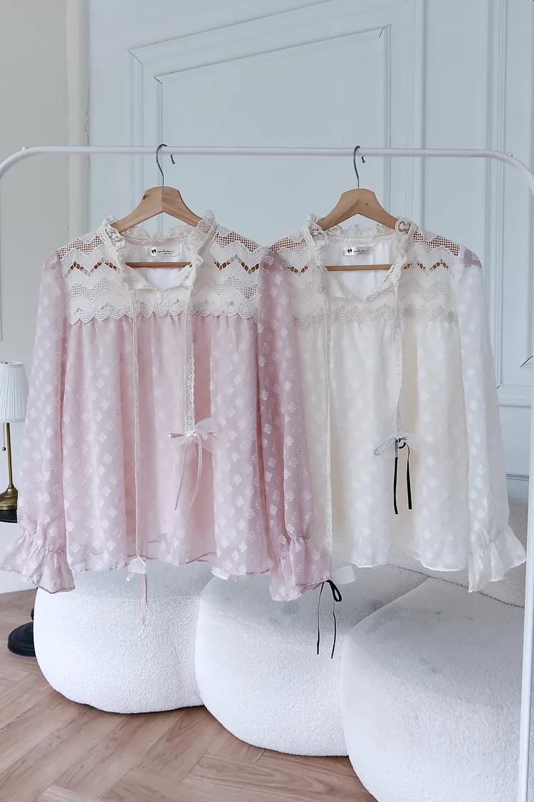【現貨】B15氣質蕾絲拼接雪紡上衣