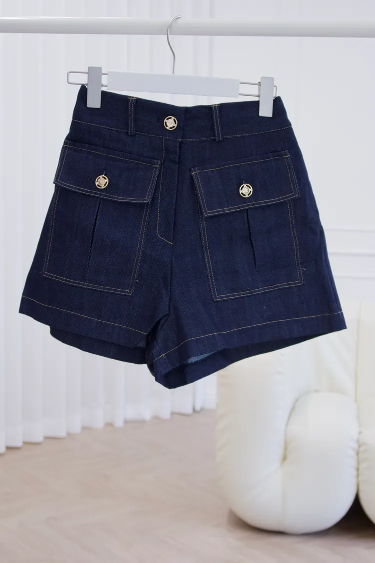 B17復古深藍雙口袋牛仔短褲