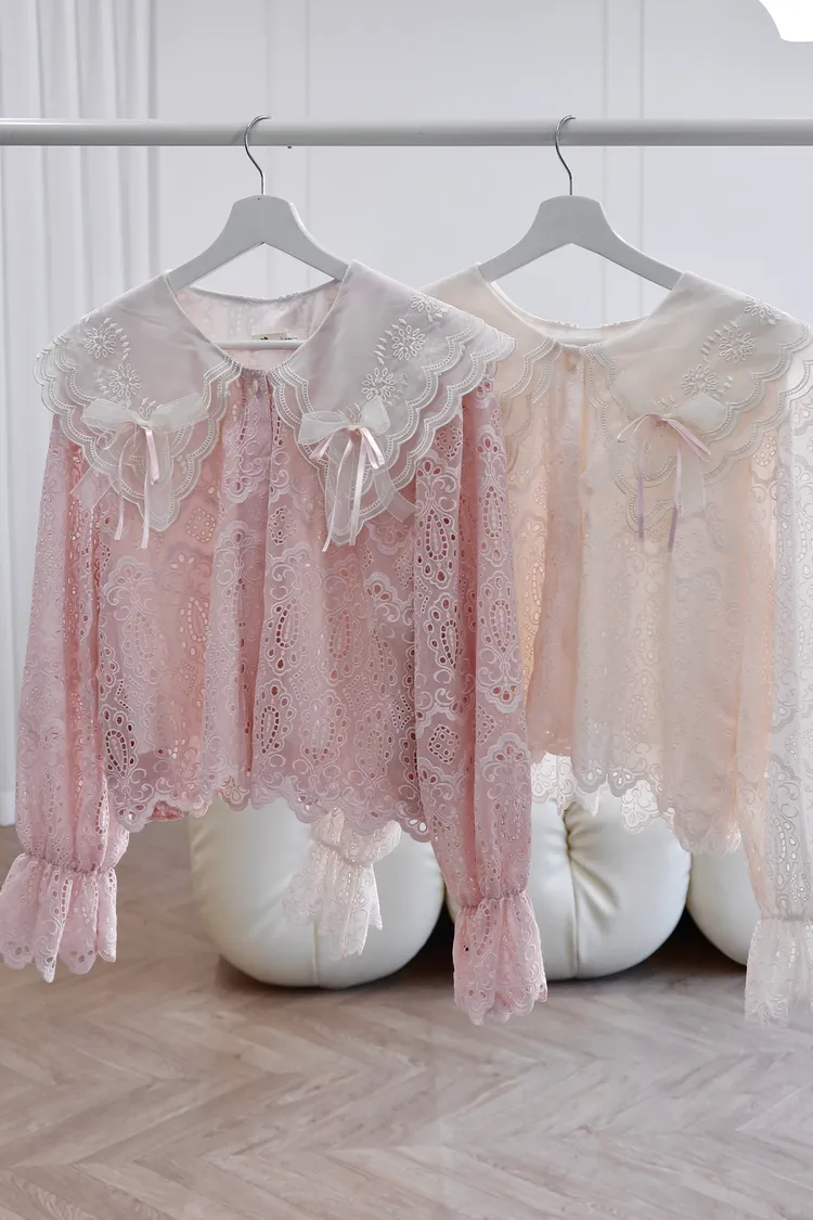 【現貨】仙氣蕾絲蝴蝶翻領上衣