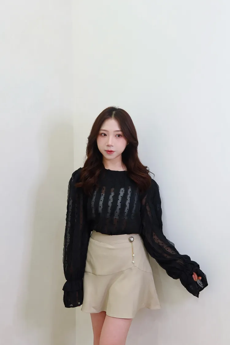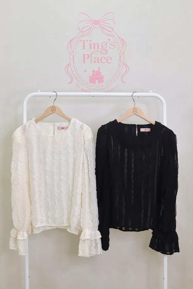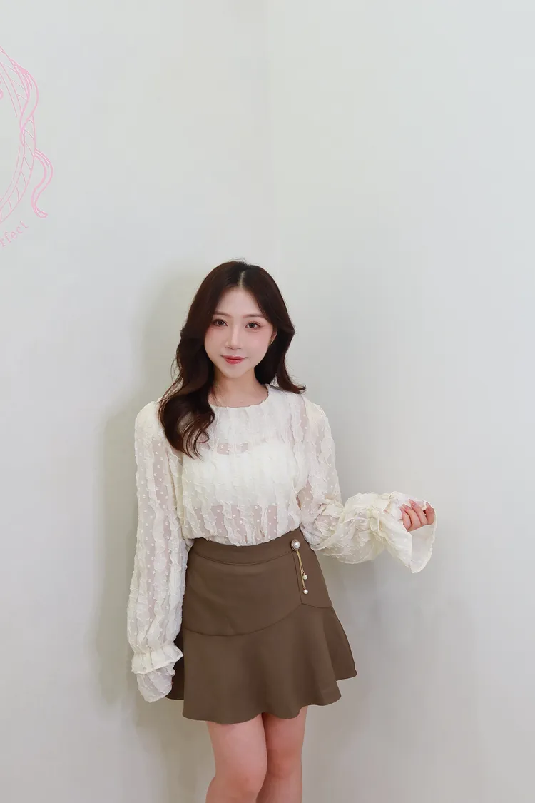 D03波紋蕾絲微透襯衫