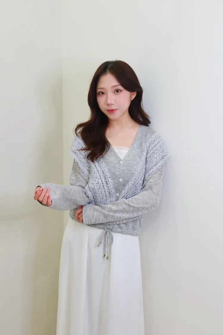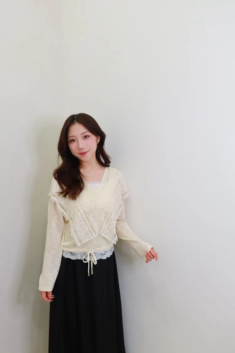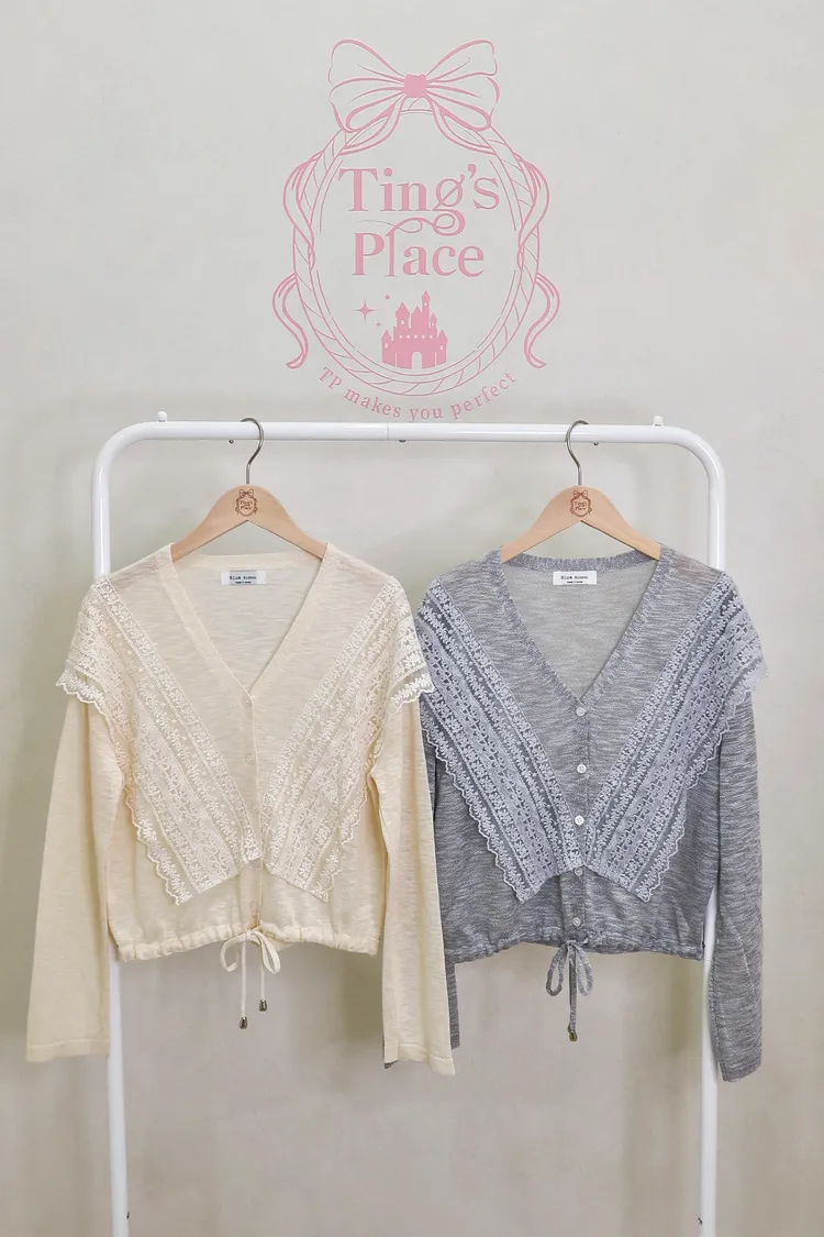 【現貨】D17蕾絲V領抽繩針織罩衫