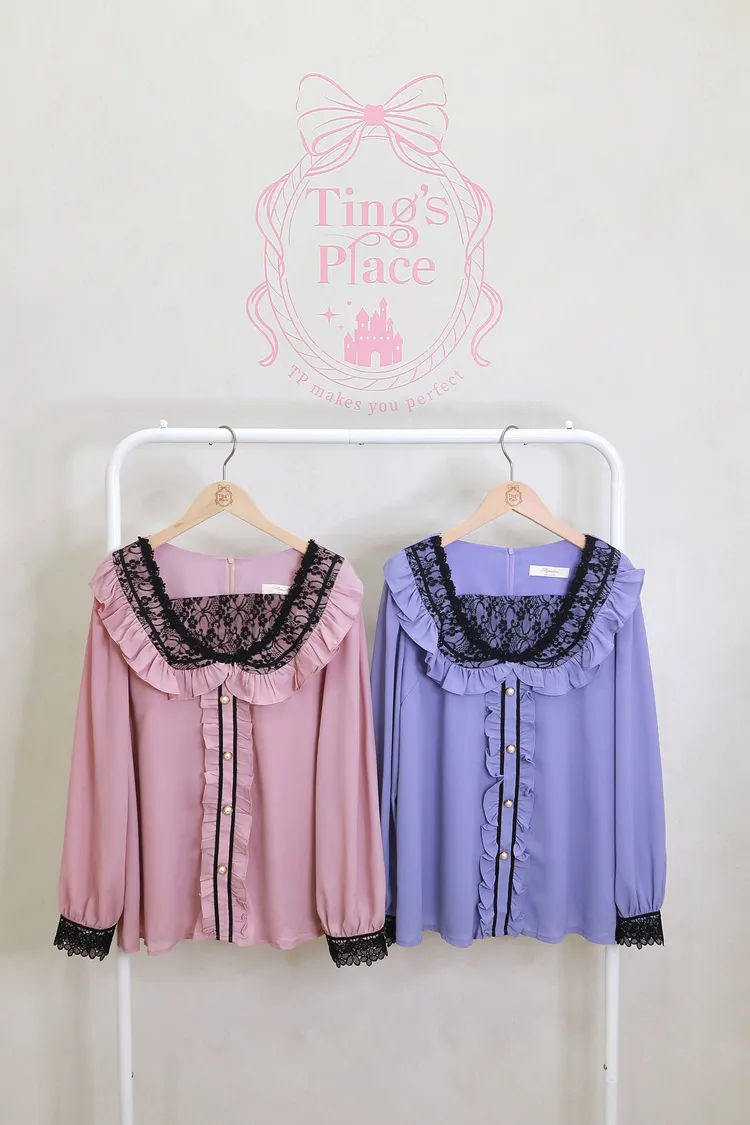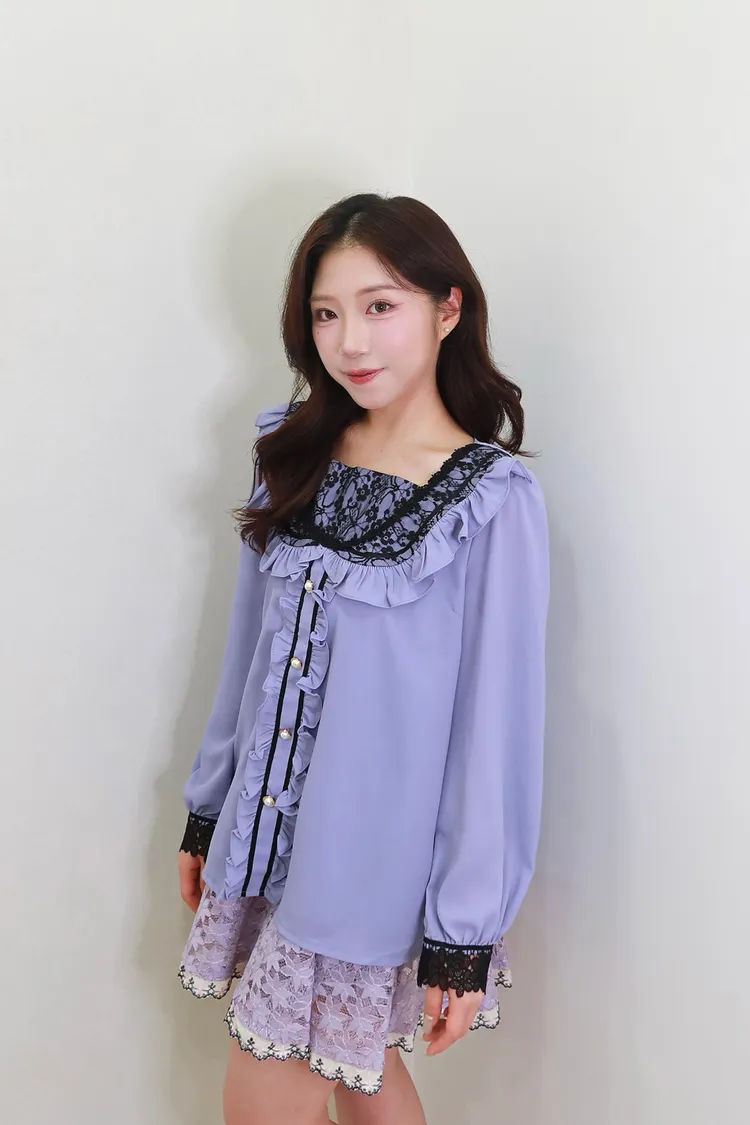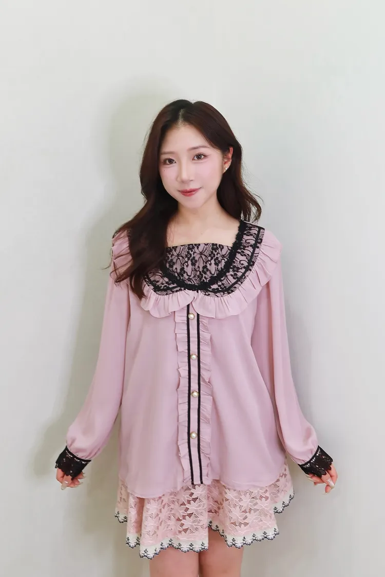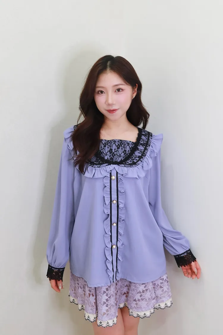 E01蕾絲荷葉珍珠襯衫