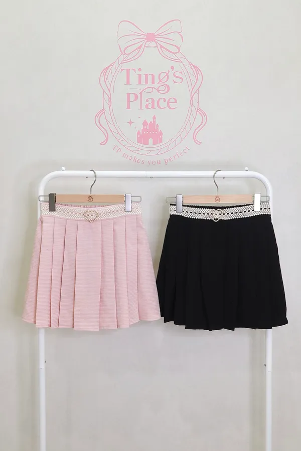 珍珠愛心腰飾蕾絲百褶裙