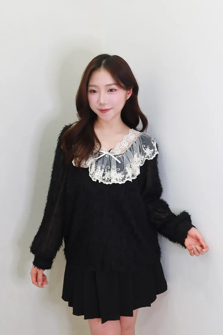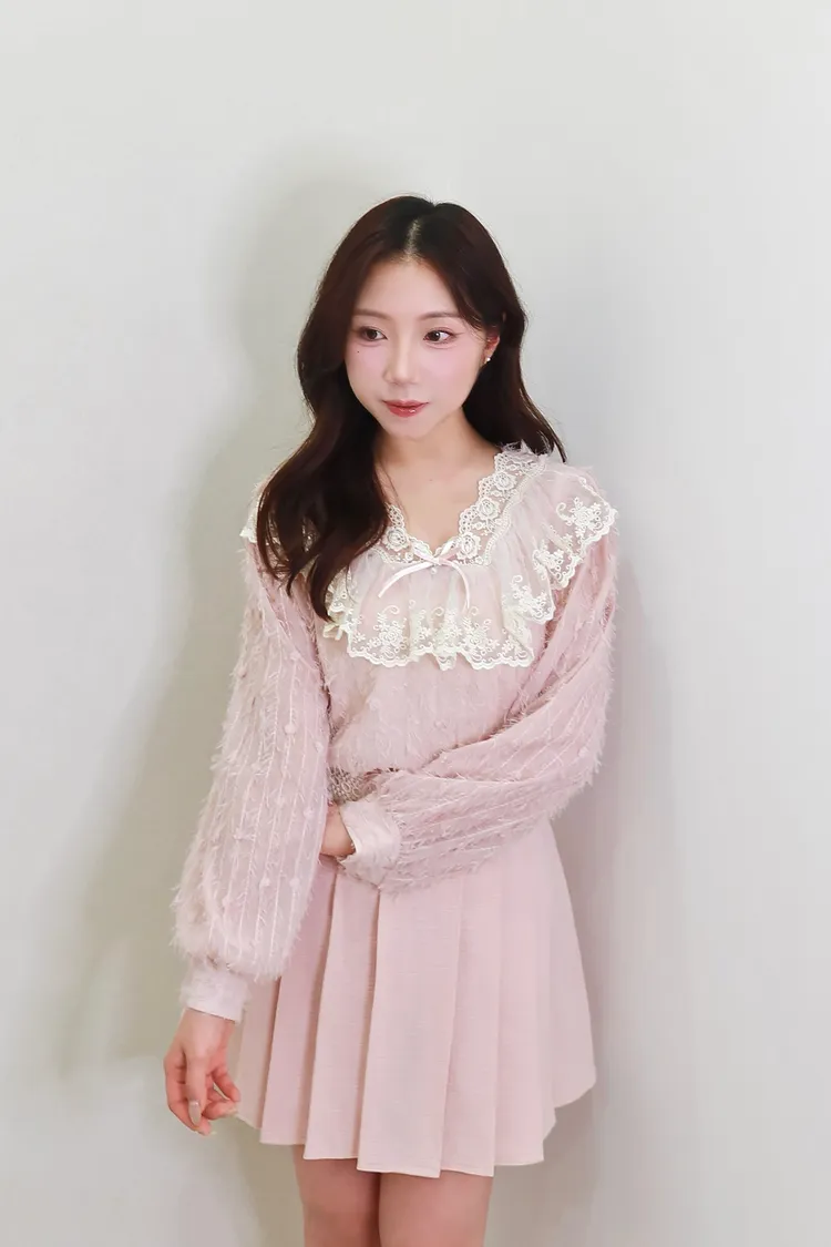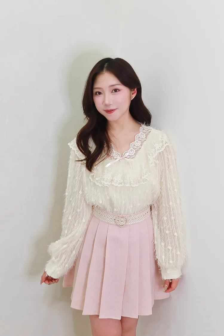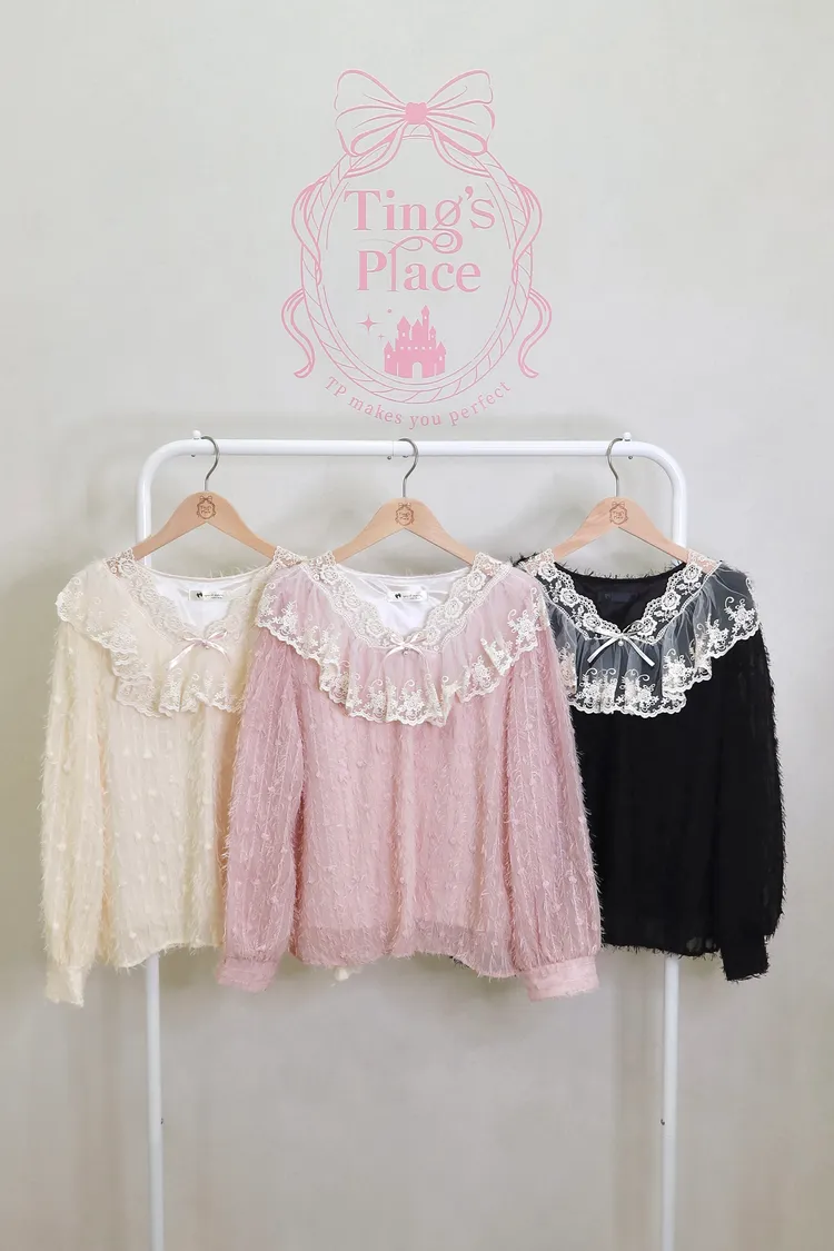 E08夢幻羽毛蕾絲上衣