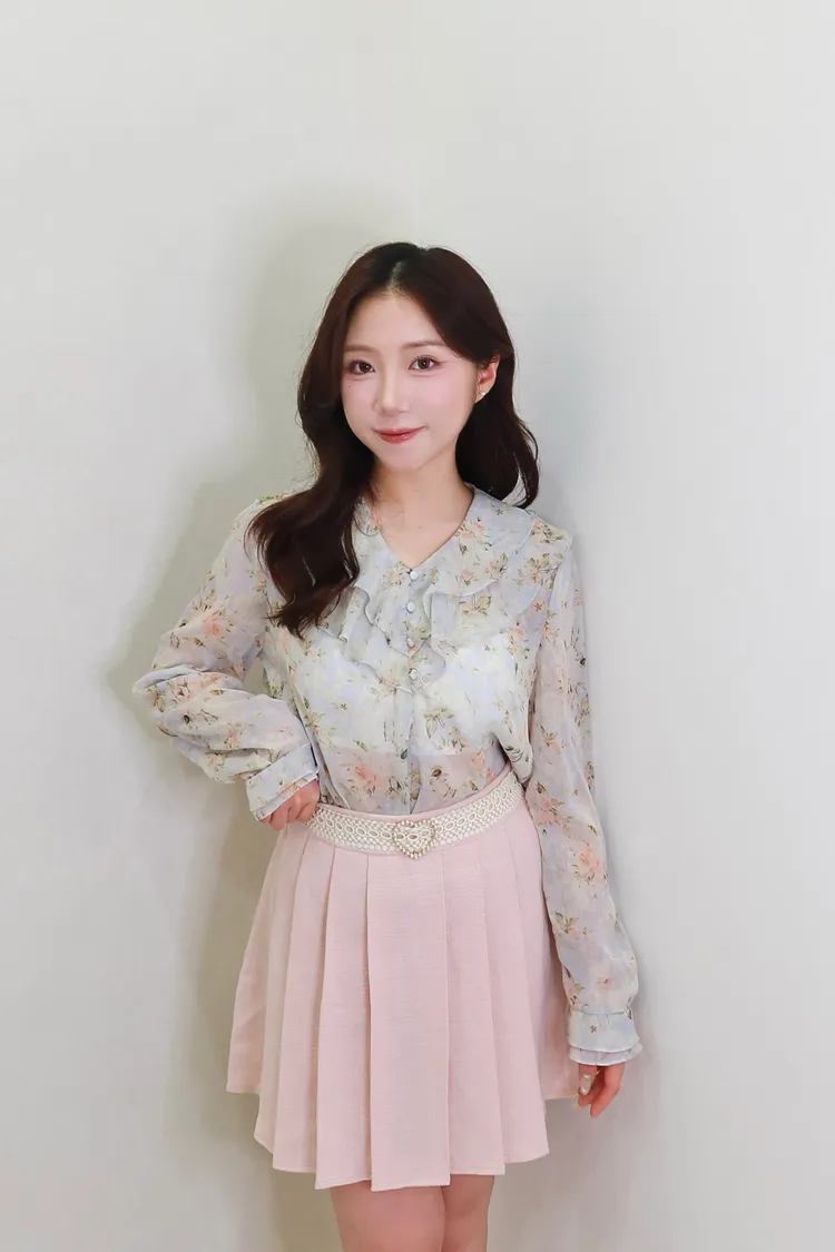 E09氣質碎花雪紡襯衫