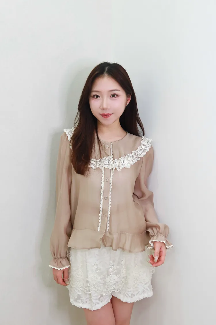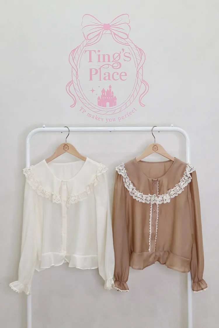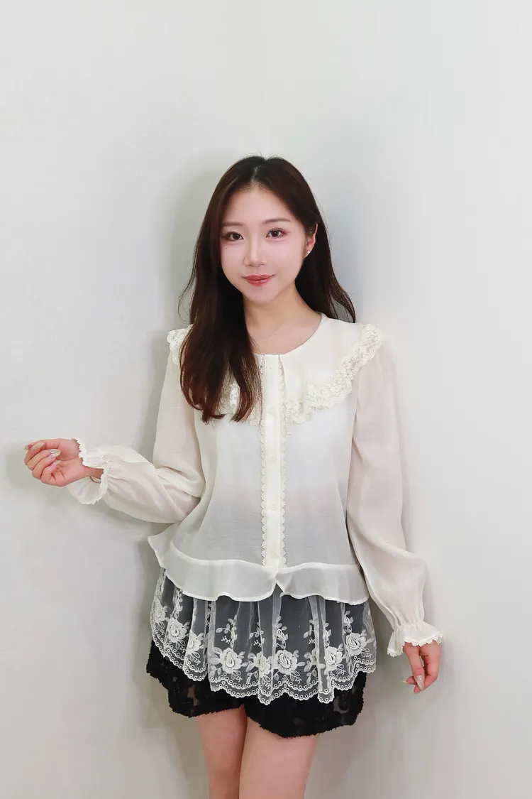F06娃娃領蕾絲雪紡上衣