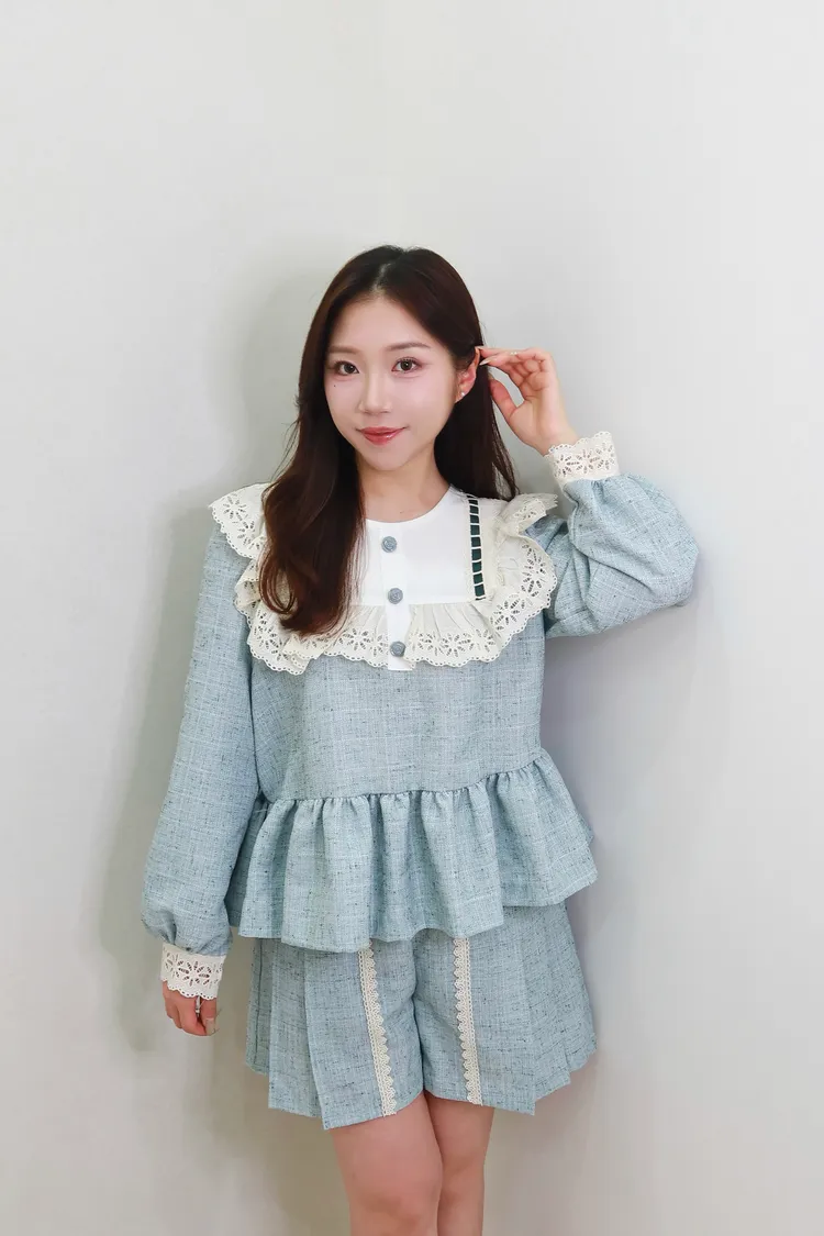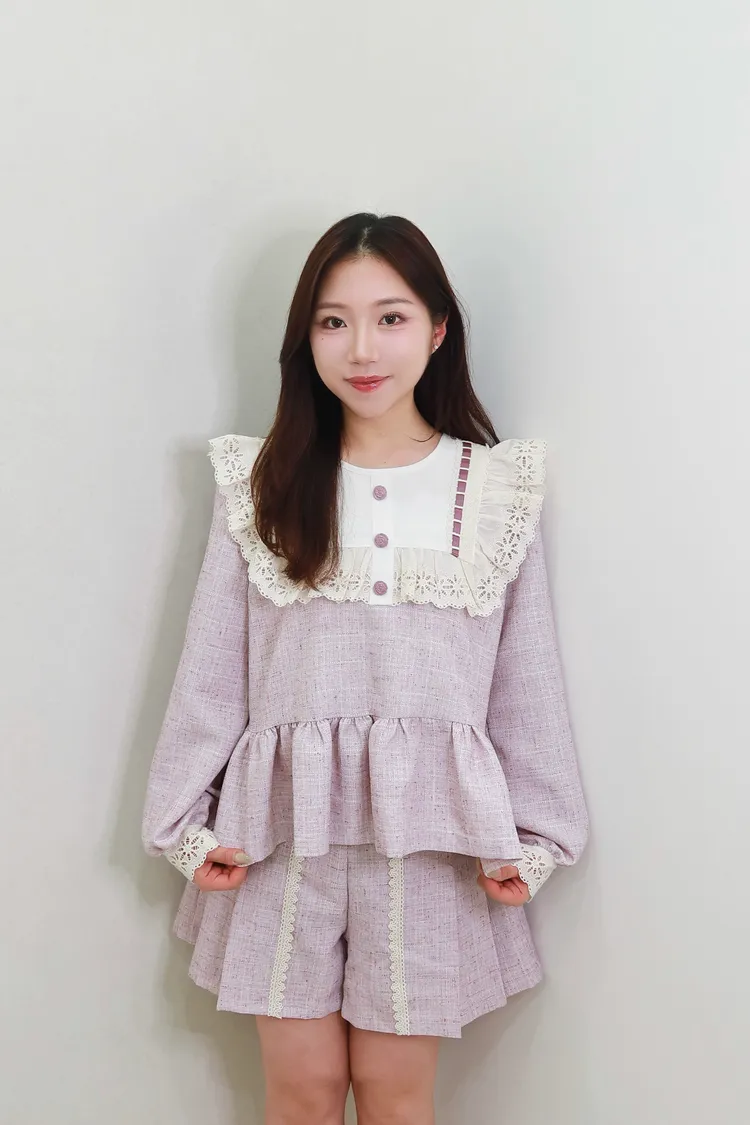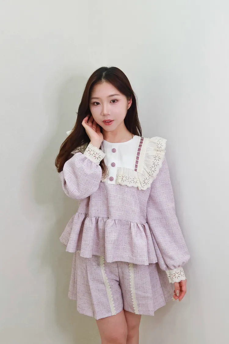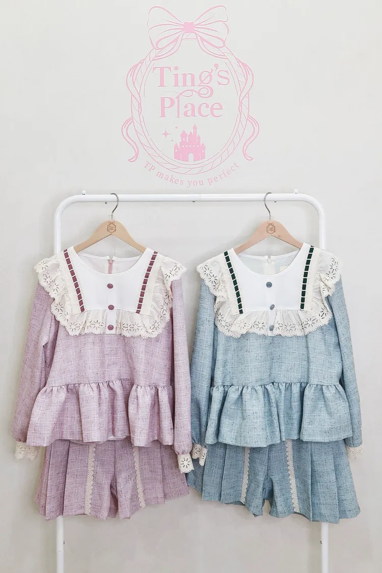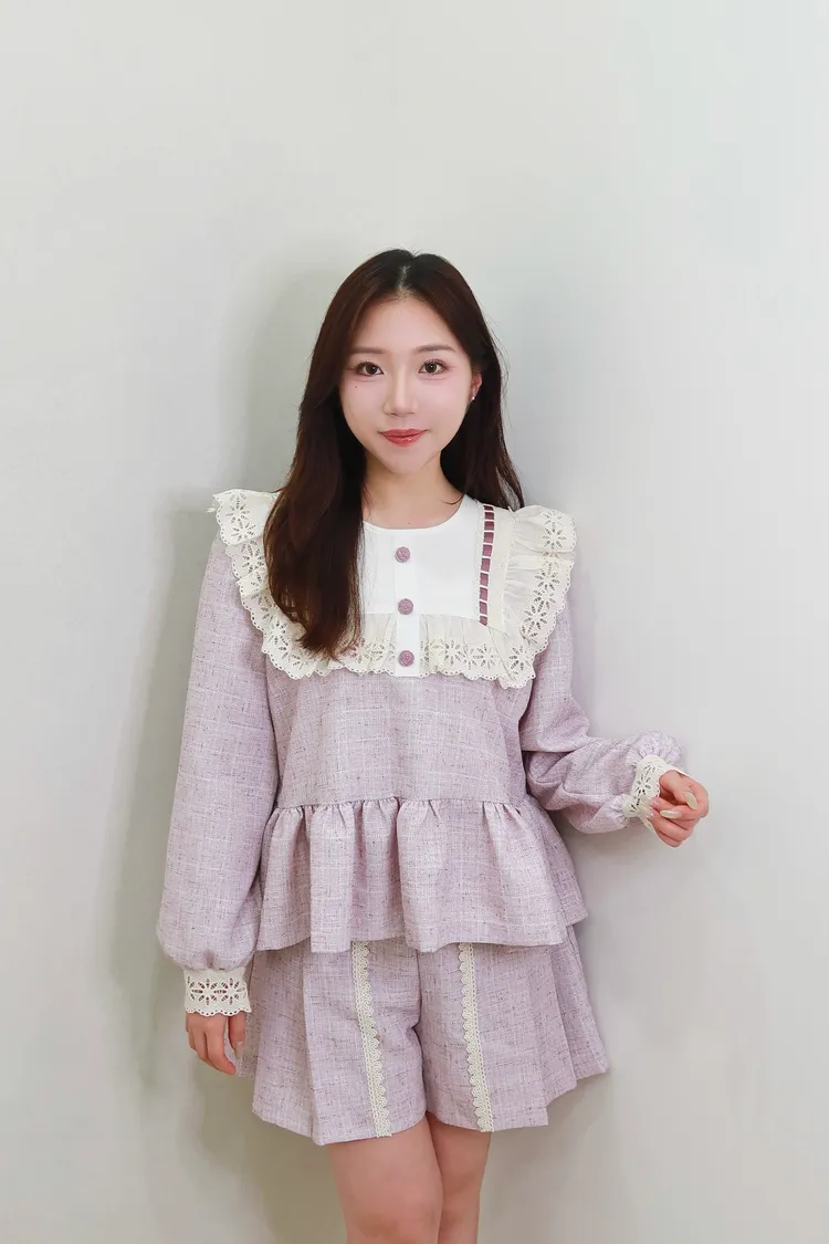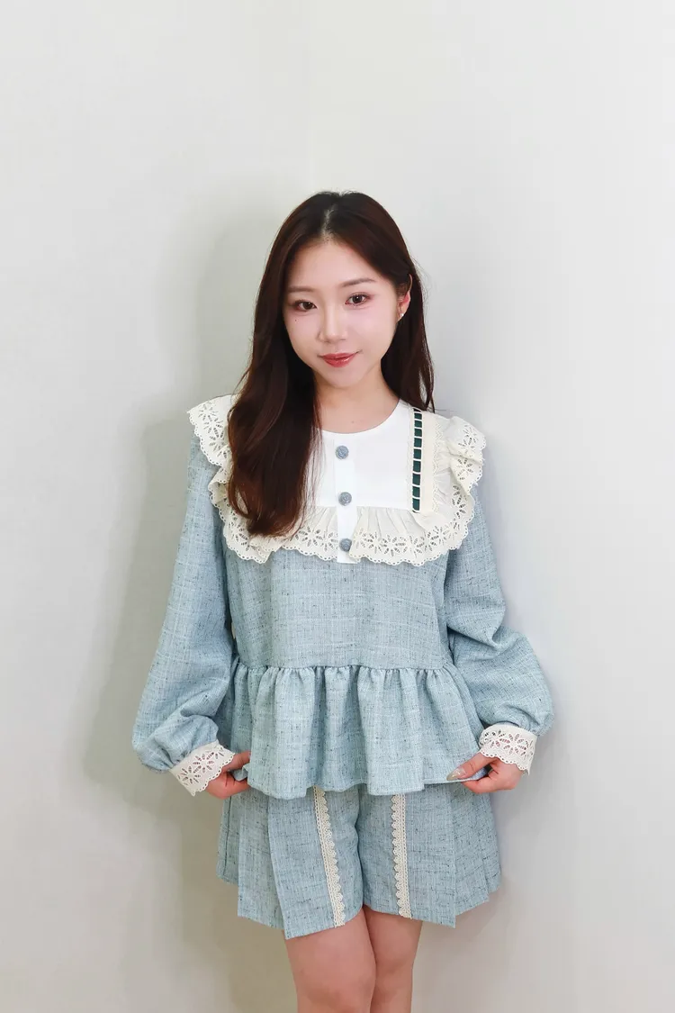 F14蕾絲花領學院風套裝