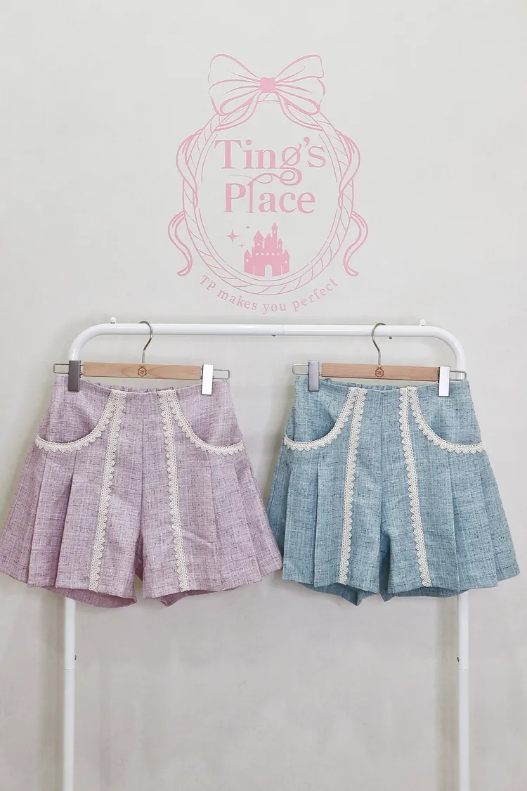 立體織紋面料搭蕾絲滾邊口袋設計