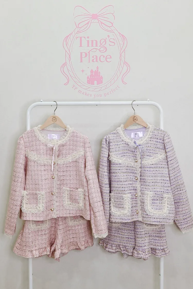 高級織紋+奶油蕾絲拼接設計 經典小香風🎀