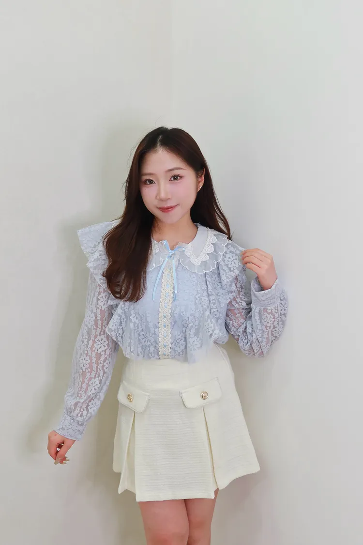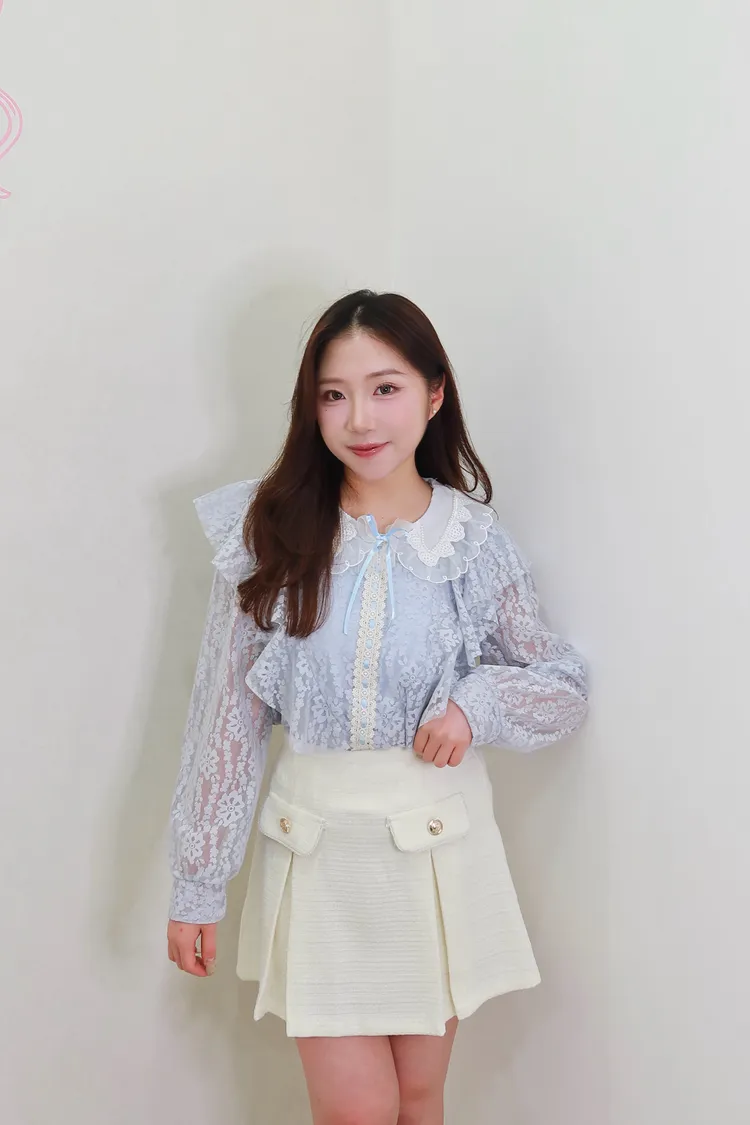 前排釦加上蕾絲滾邊 細節滿滿 近看更精緻
