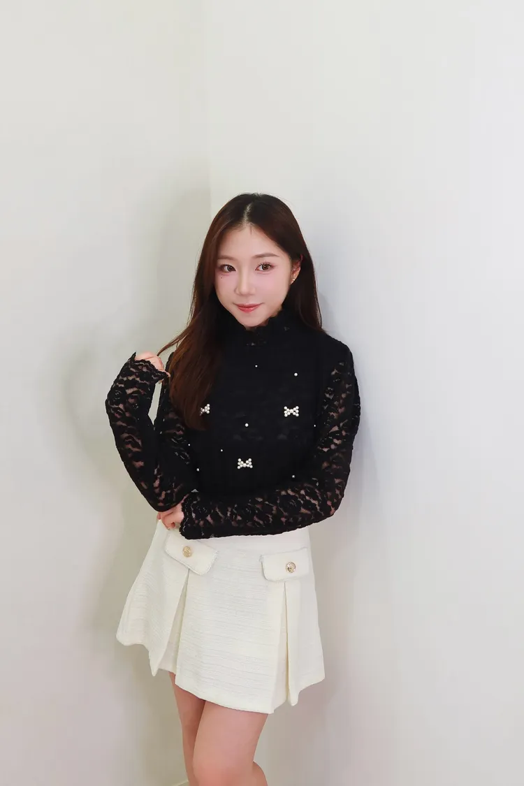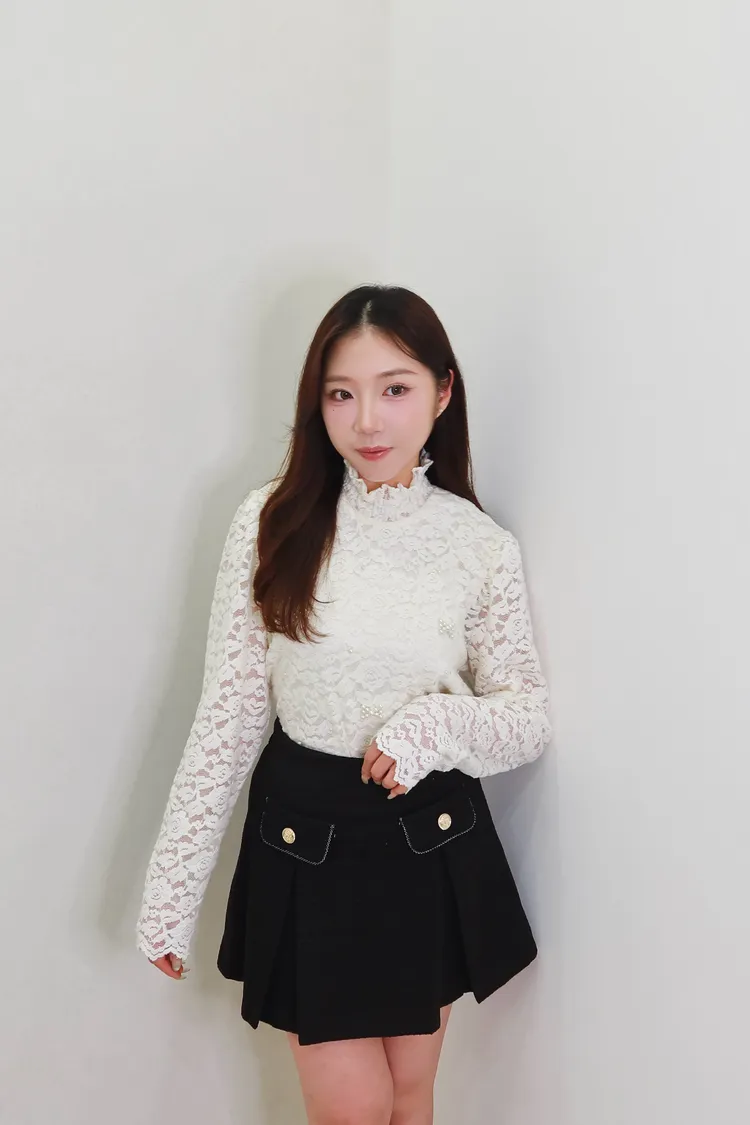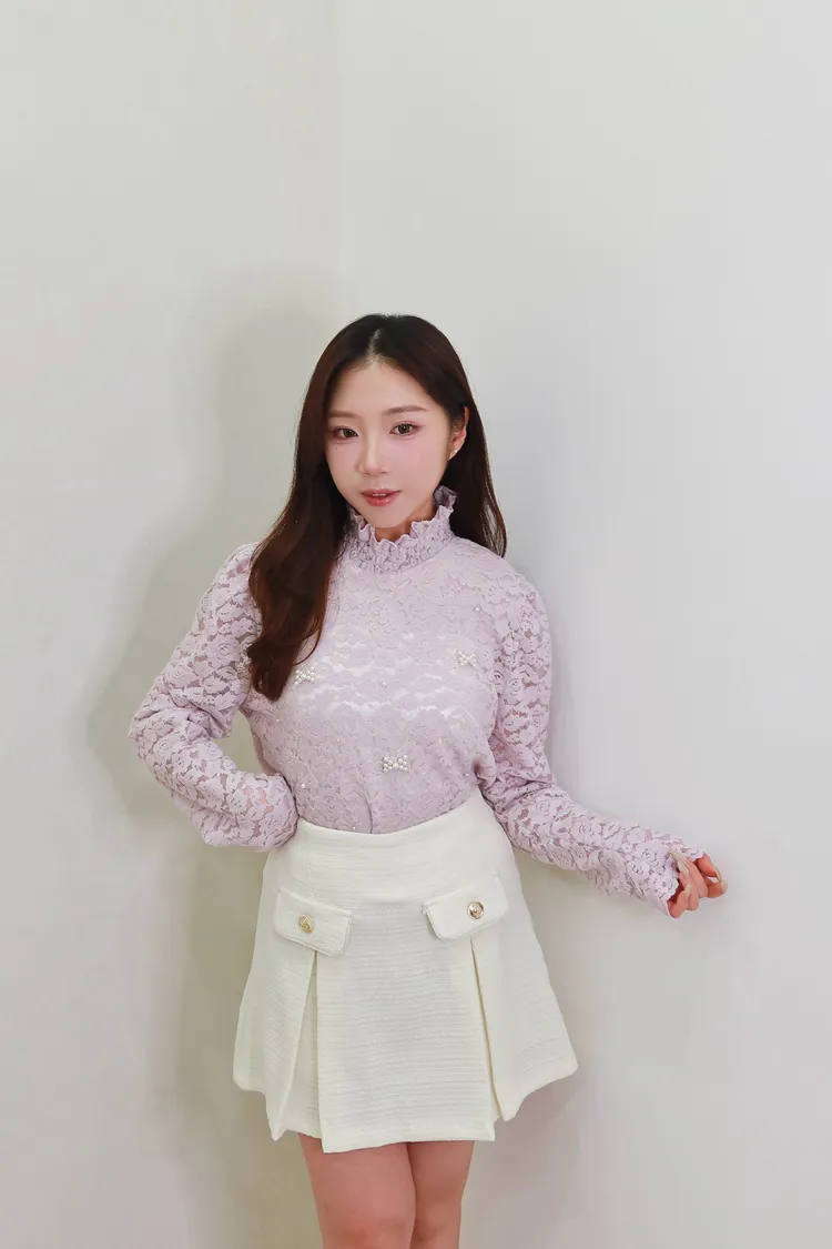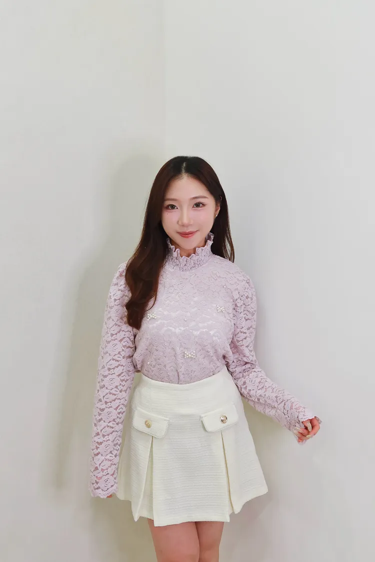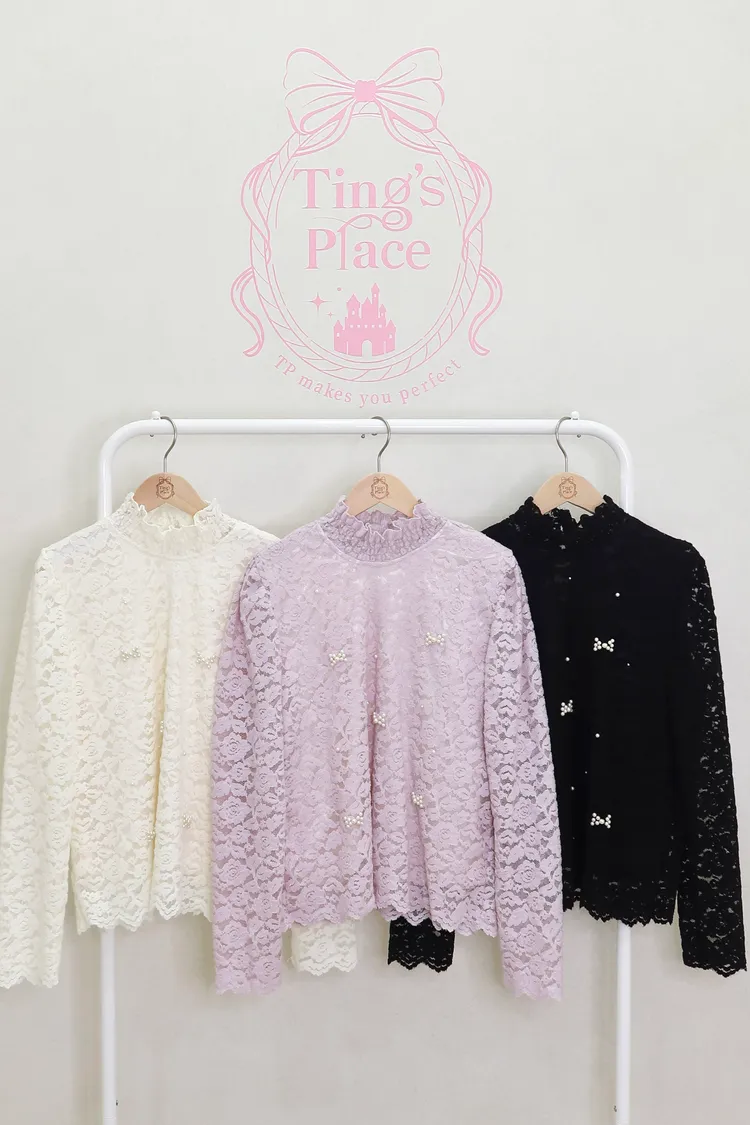 這款高雅又帶點甜美氣息的磨毛蕾絲高領上衣