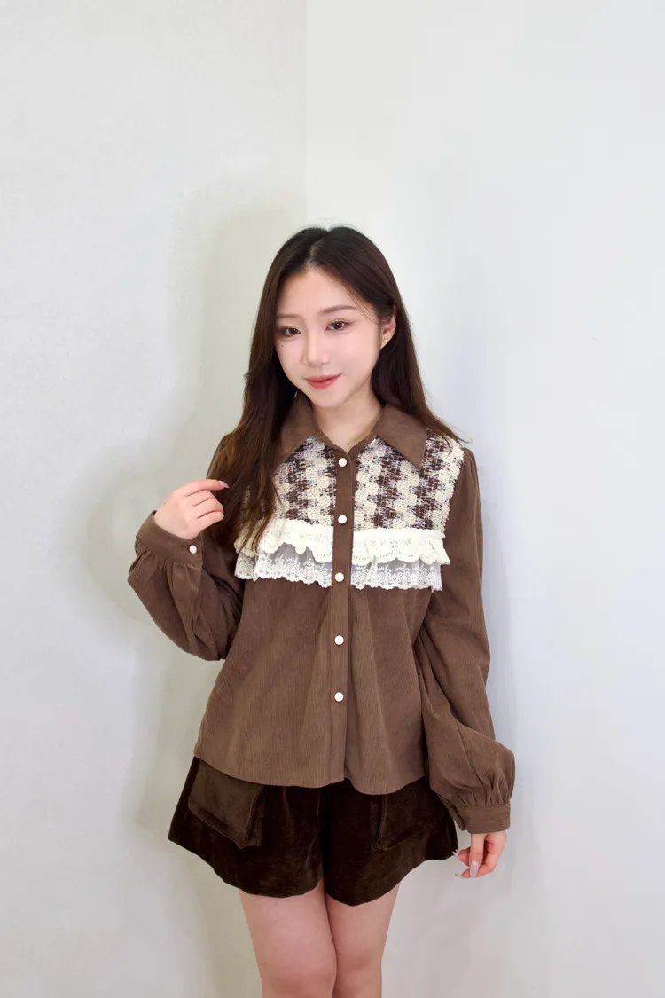 燈芯絨+蕾絲拼接元素超特別 秋冬層次感滿滿 袖子肩線微蓬設計 溫柔又修飾手臂線條 燈芯絨材質柔軟不厚重 親膚舒適又保暖可以當上衣襯衫 也可以當外套穿著 版型略微寬鬆 不挑身形、顯瘦度很好 奶杏溫柔、咖啡復古 兩色都是秋冬氛圍感必備款1:42:06