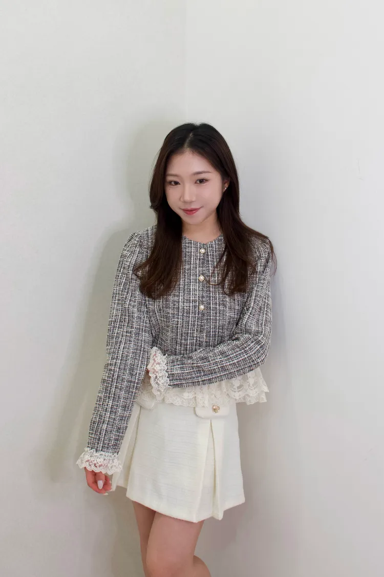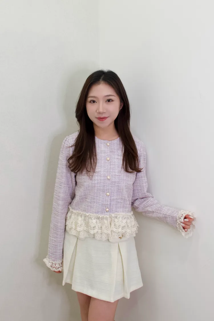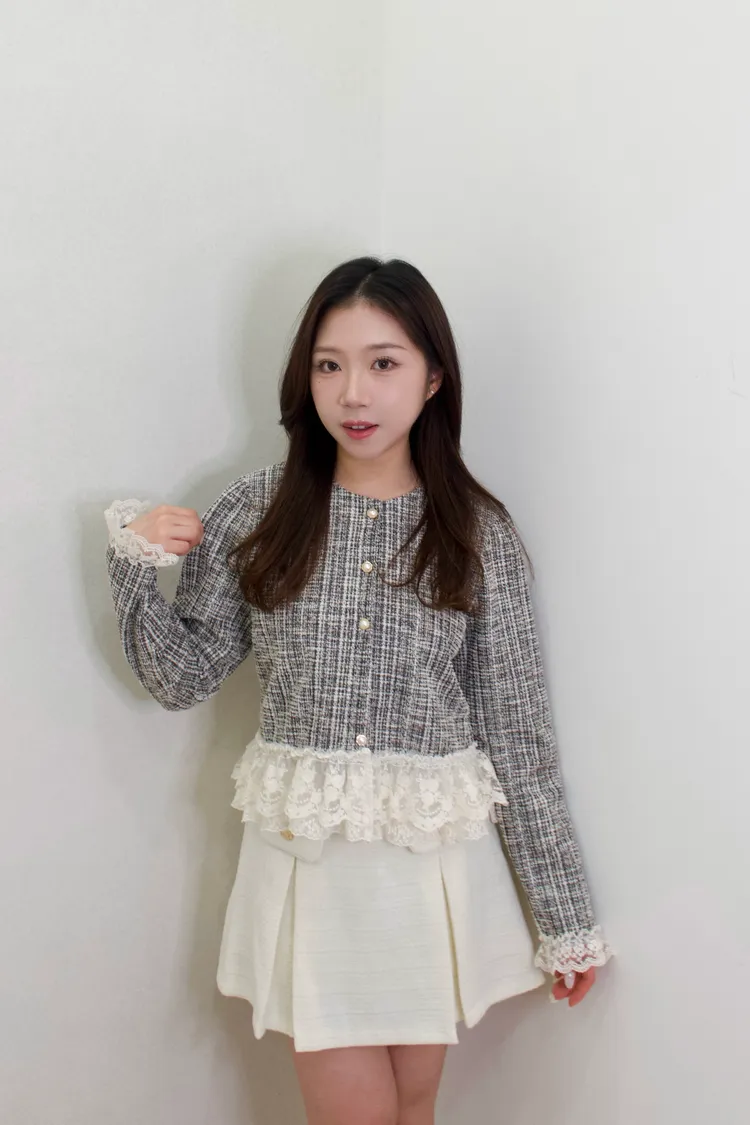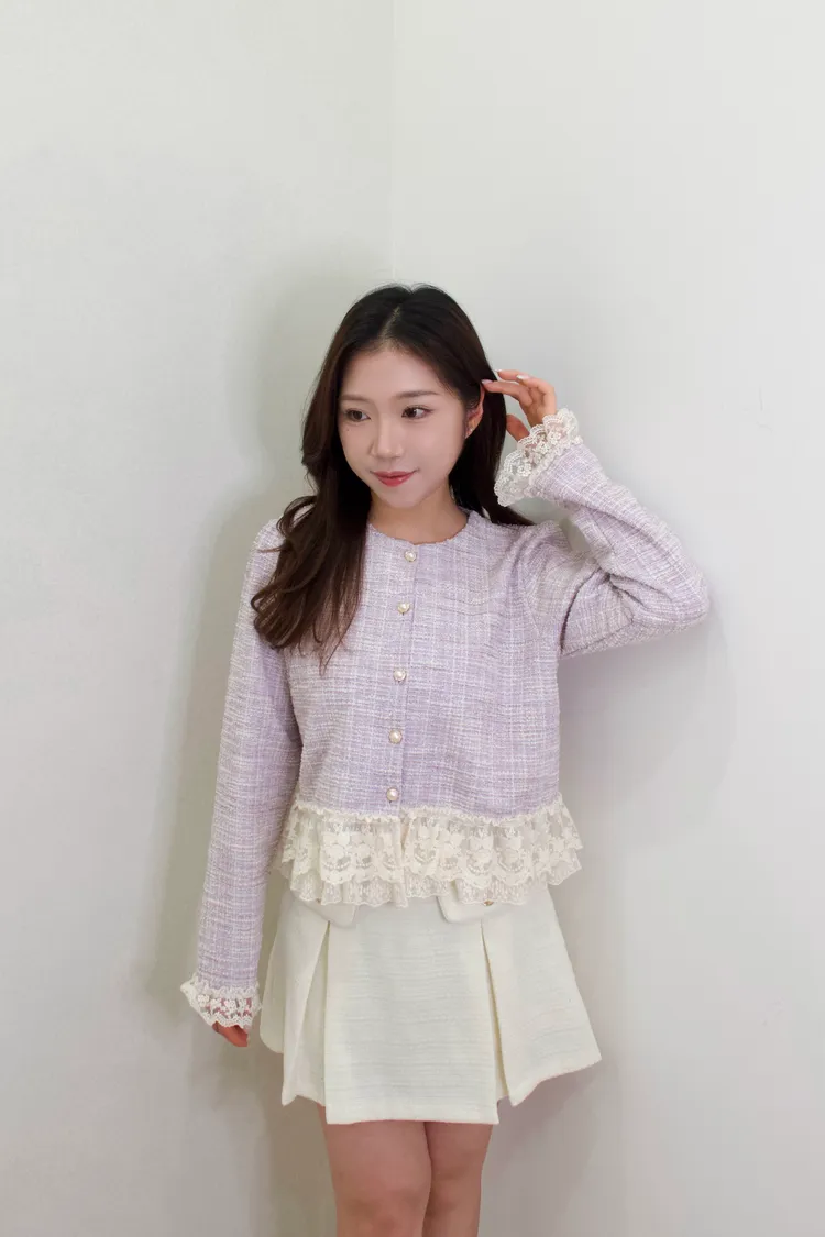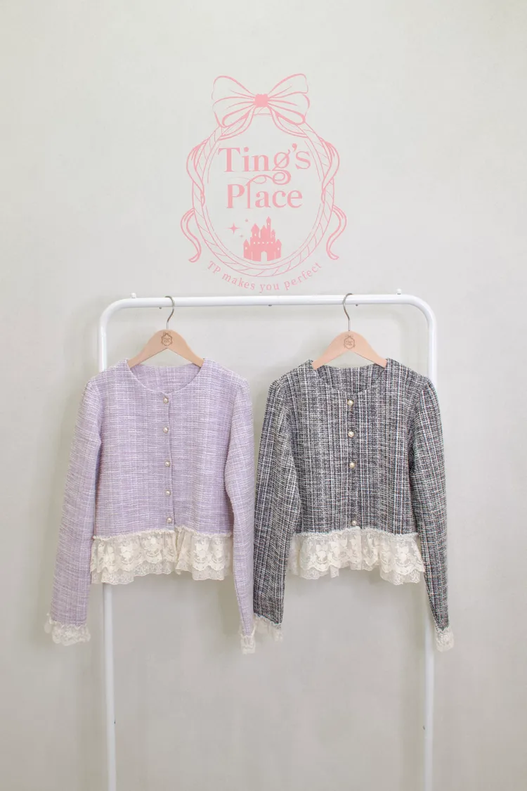 細緻小香風織紋 搭配下擺 蕾絲拼接設計
