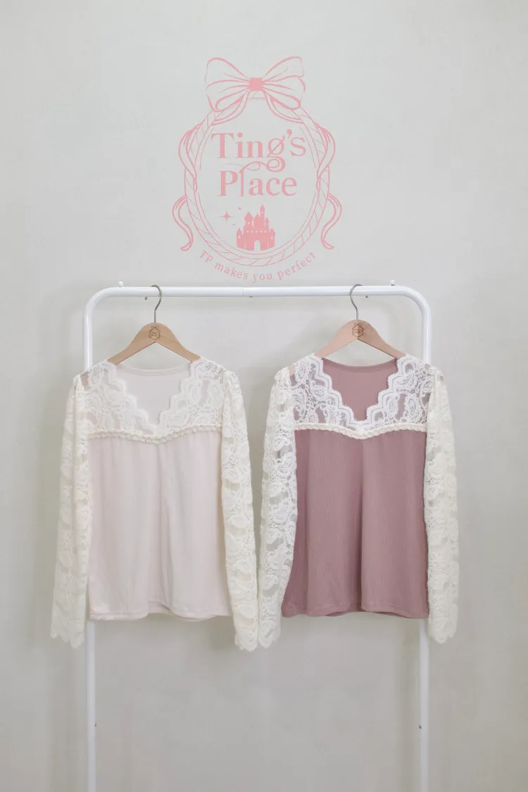 磨毛薄絨蕾絲拼接上衣