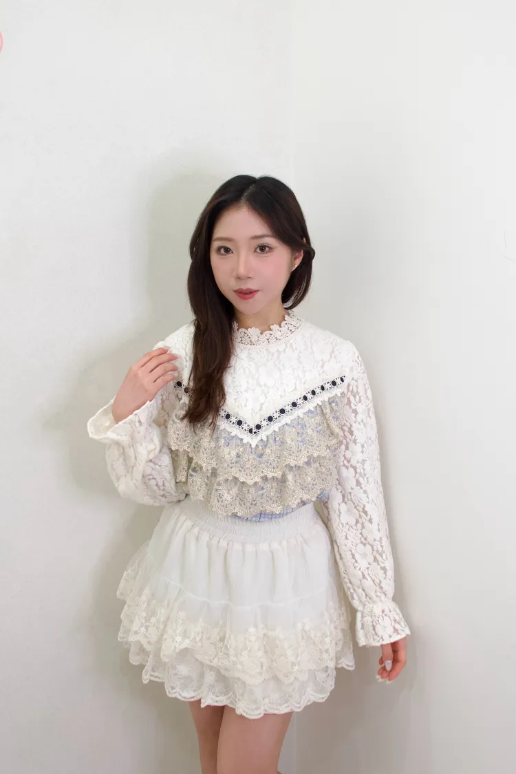 小香立體磨毛刺繡蕾絲上衣
