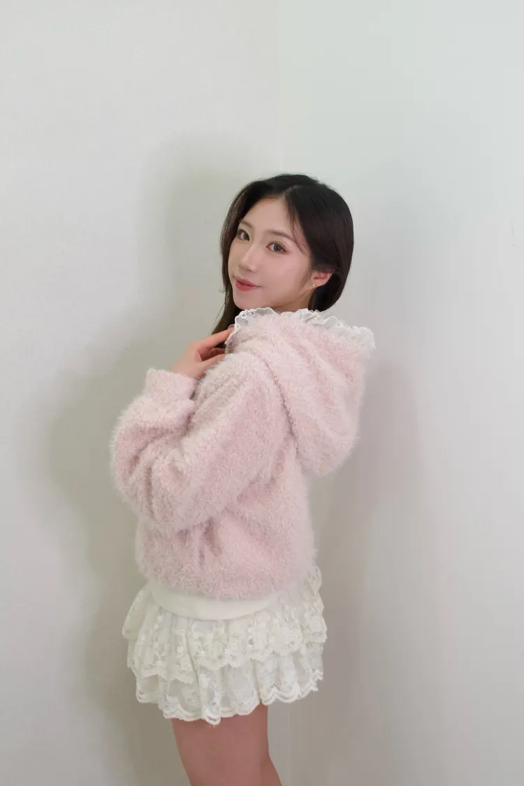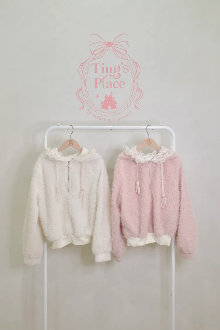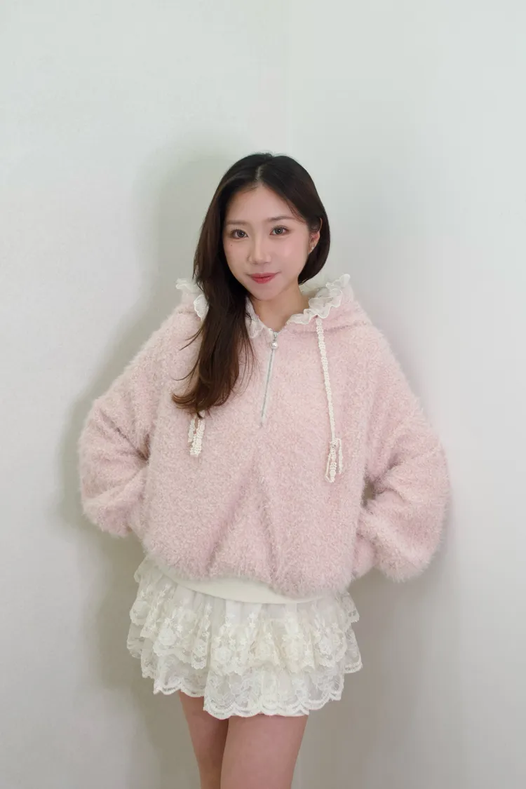 公主羊毛蕾絲連帽上衣