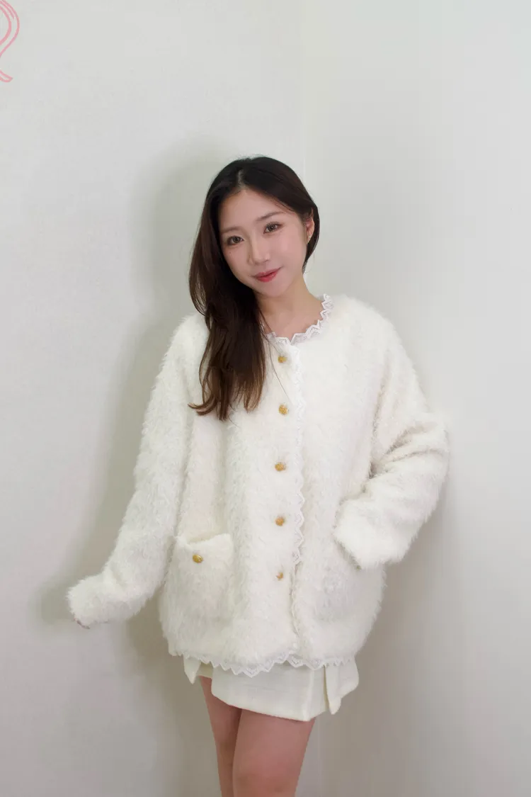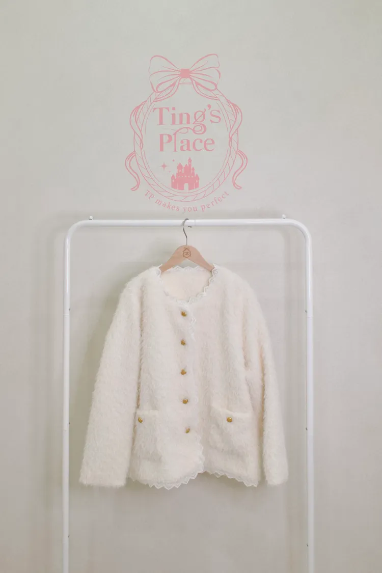 雪白名媛金釦毛絨外套