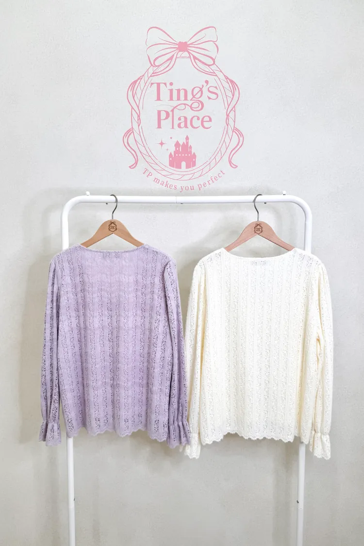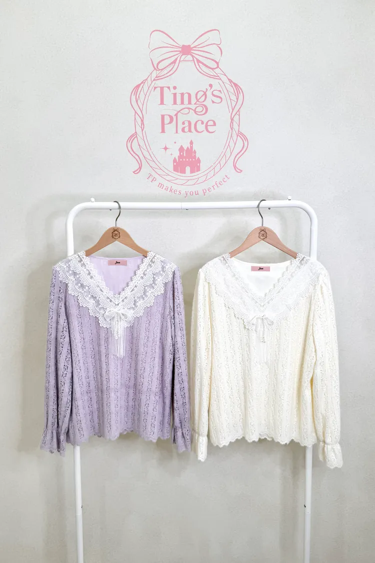 夢幻V領薄磨毛蕾絲雕花上衣