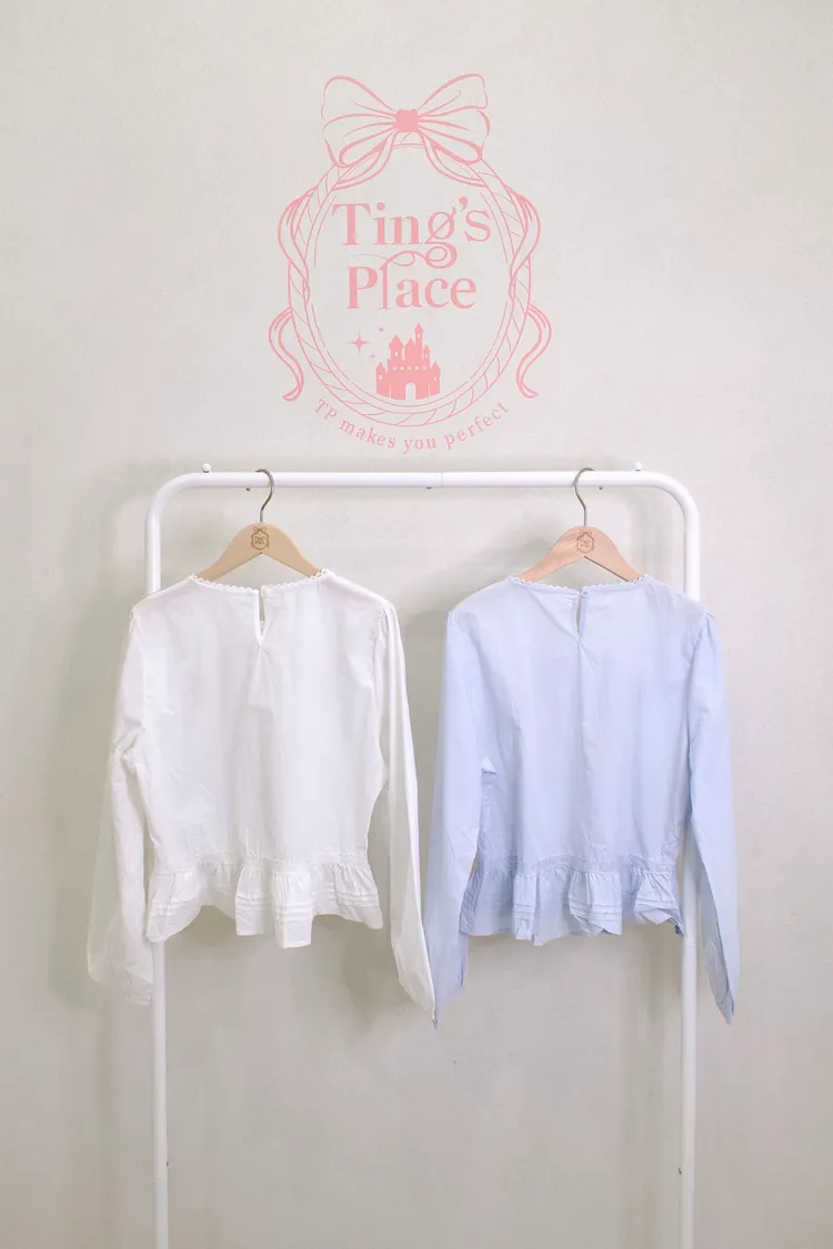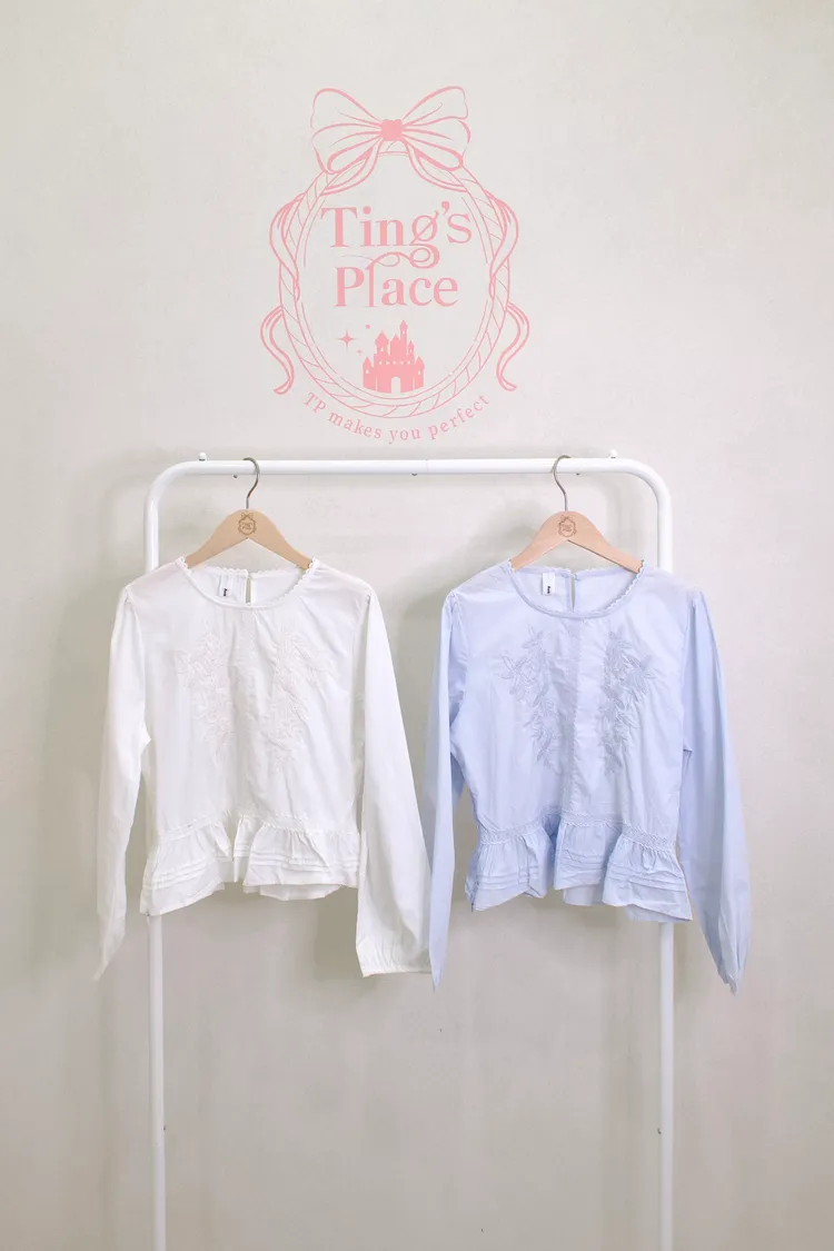 溫柔布蕾絲刺繡荷葉下擺上衣