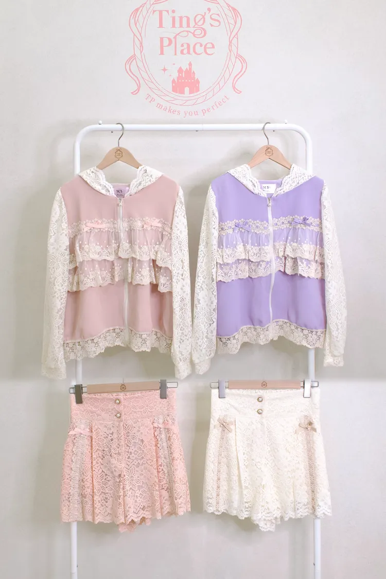 甜美蕾絲連帽外套/短褲套裝(套裝價下單區)