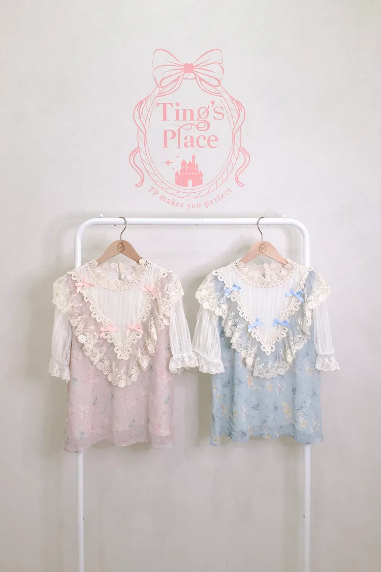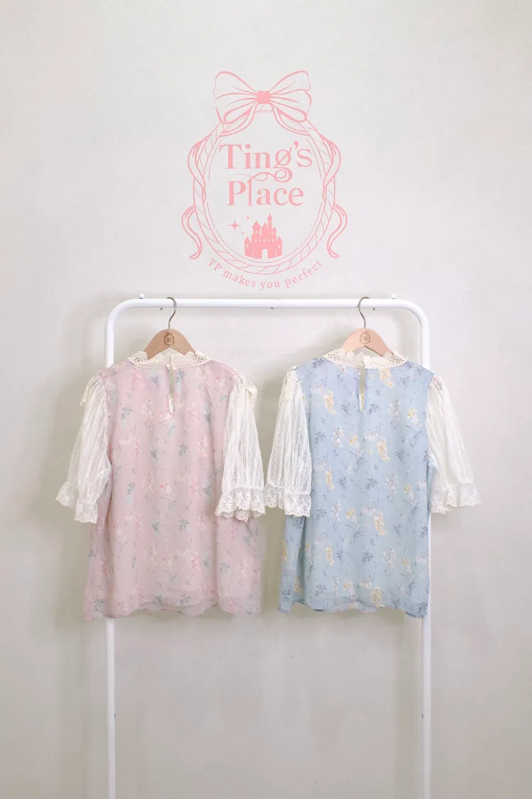 碎花雪紡蕾絲蝴蝶結上衣