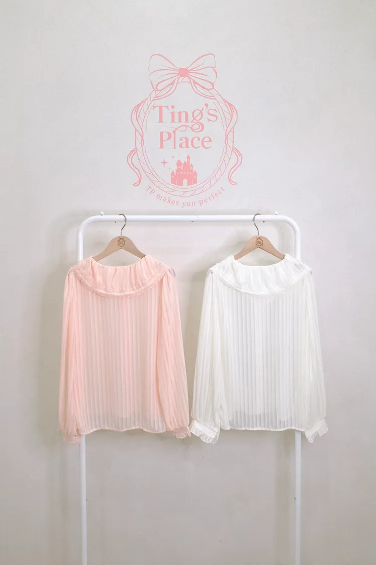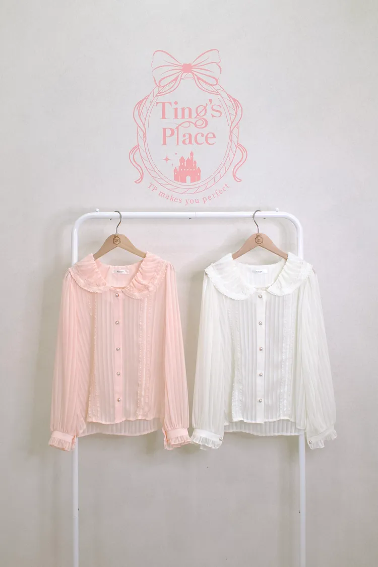 娃娃領雪紡壓折袖襯衫