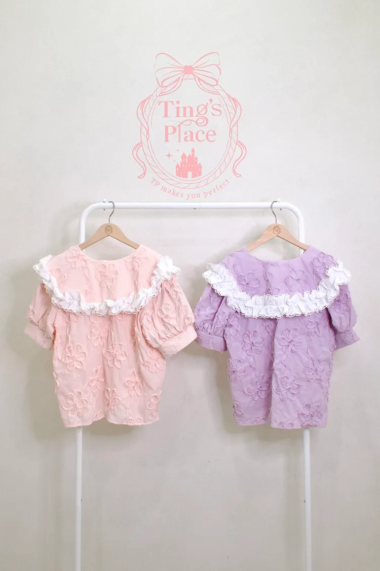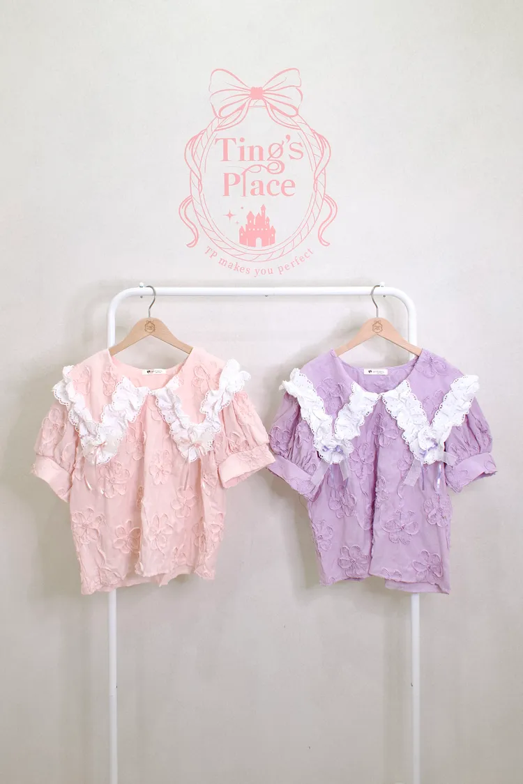 立體花朵布蕾絲大翻領上衣