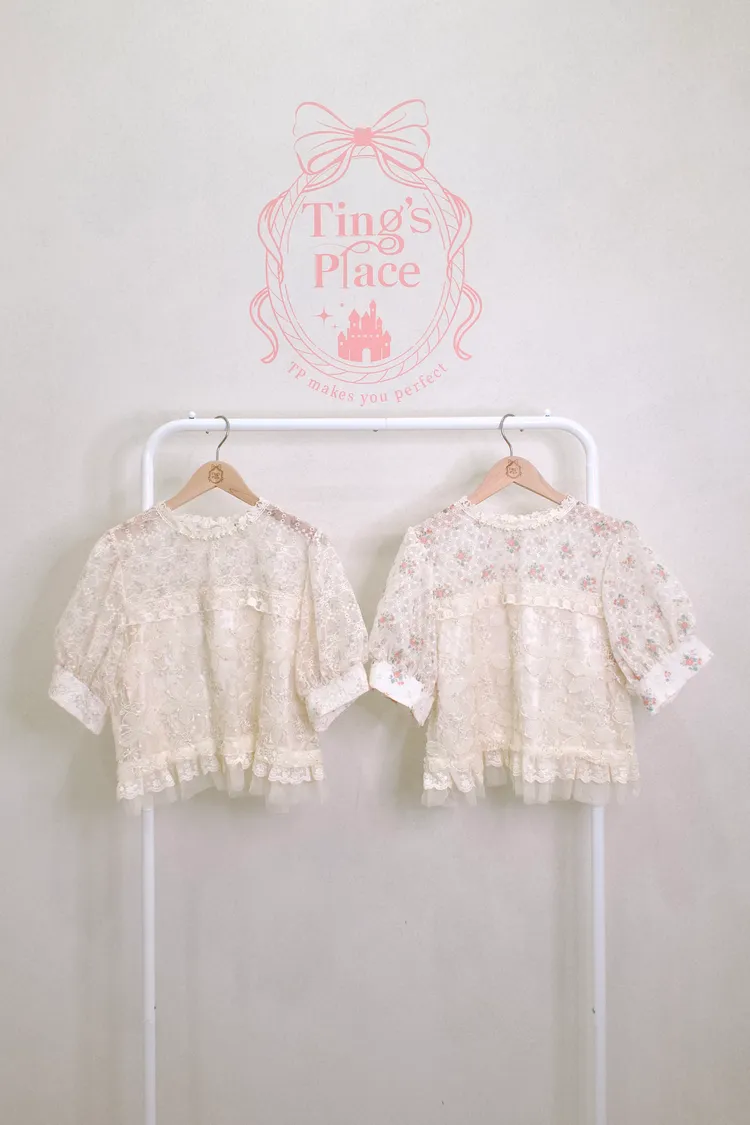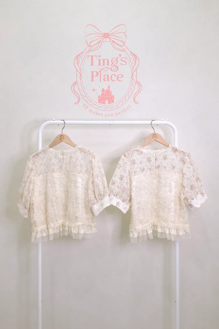 刺繡花蕾絲拼接網紗上衣