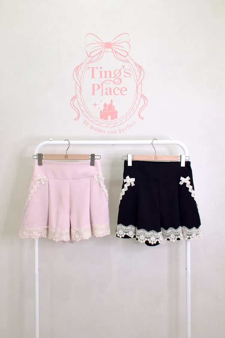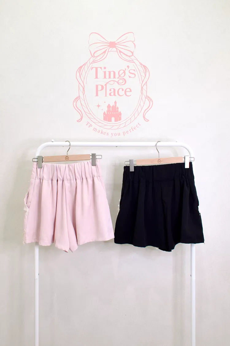 高腰雕花蕾絲西裝短褲